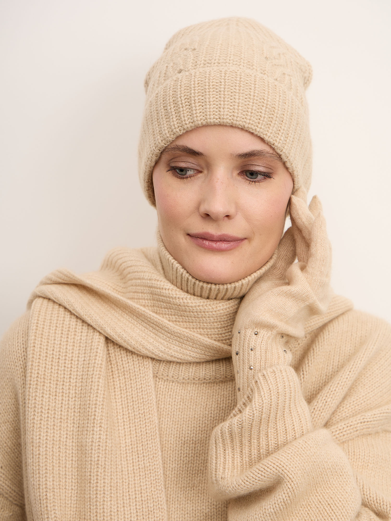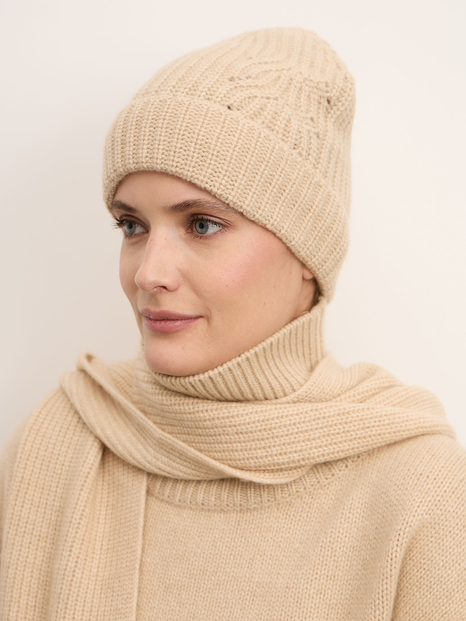 Шапка из кашемира 15-23-205-0C бежевая