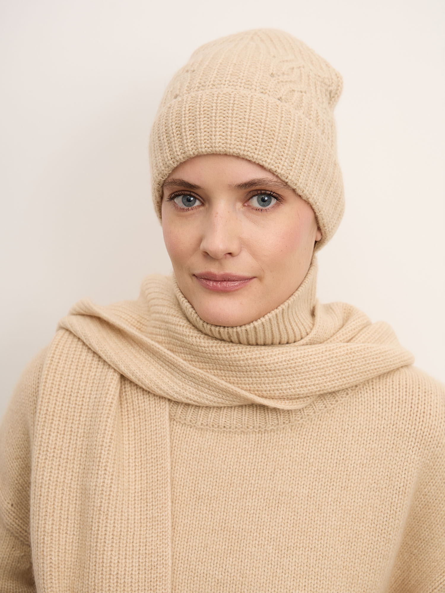 Бежевая кашемировая шапка — универсальный аксессуар в стиле спокойной элегантности. Лаконичная форма и благородная фактура натурального кашемира делают модель базовой частью зимнего гардероба. Мягкая, легкая и пластичная, она деликатно согревает, создавая ощущение уюта без утяжеления образа. Идеально сочетается с пальто, пуховиками и трикотажными комплектами в нейтральной гамме.
