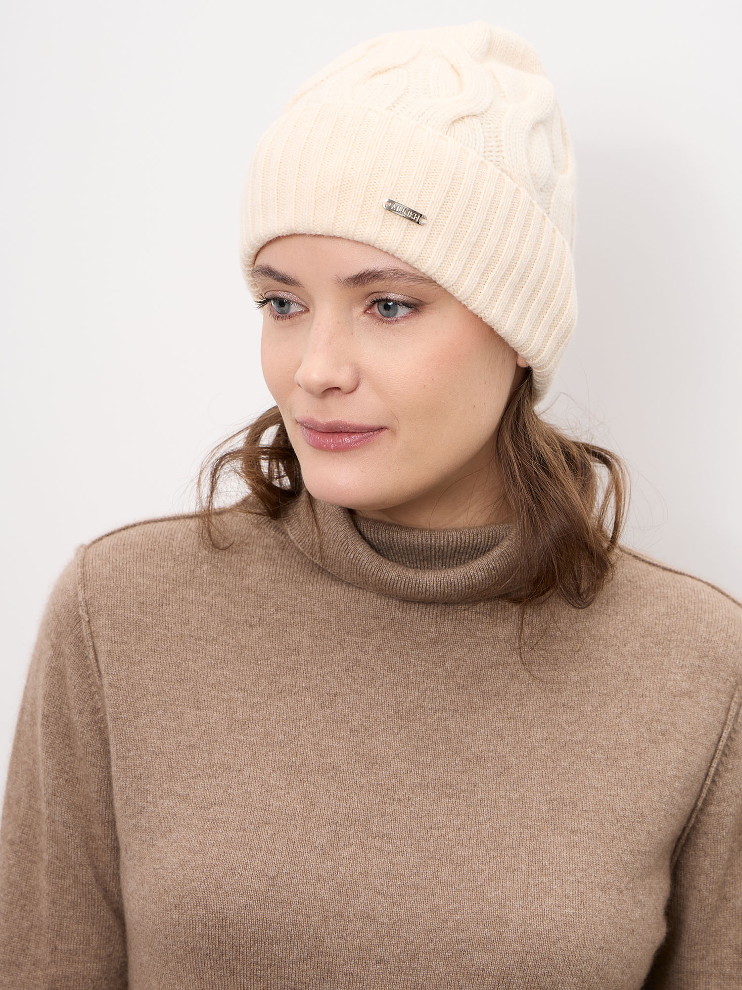 Элегантная шапка из натурального кашемира в нежном кремовом оттенке. Лаконичный дизайн и аккуратная посадка делают модель универсальной — она легко сочетается с классической и повседневной верхней одеждой. Мягкая фактура подчёркивает благородство материала и обеспечивает максимальный комфорт в холодное время года.