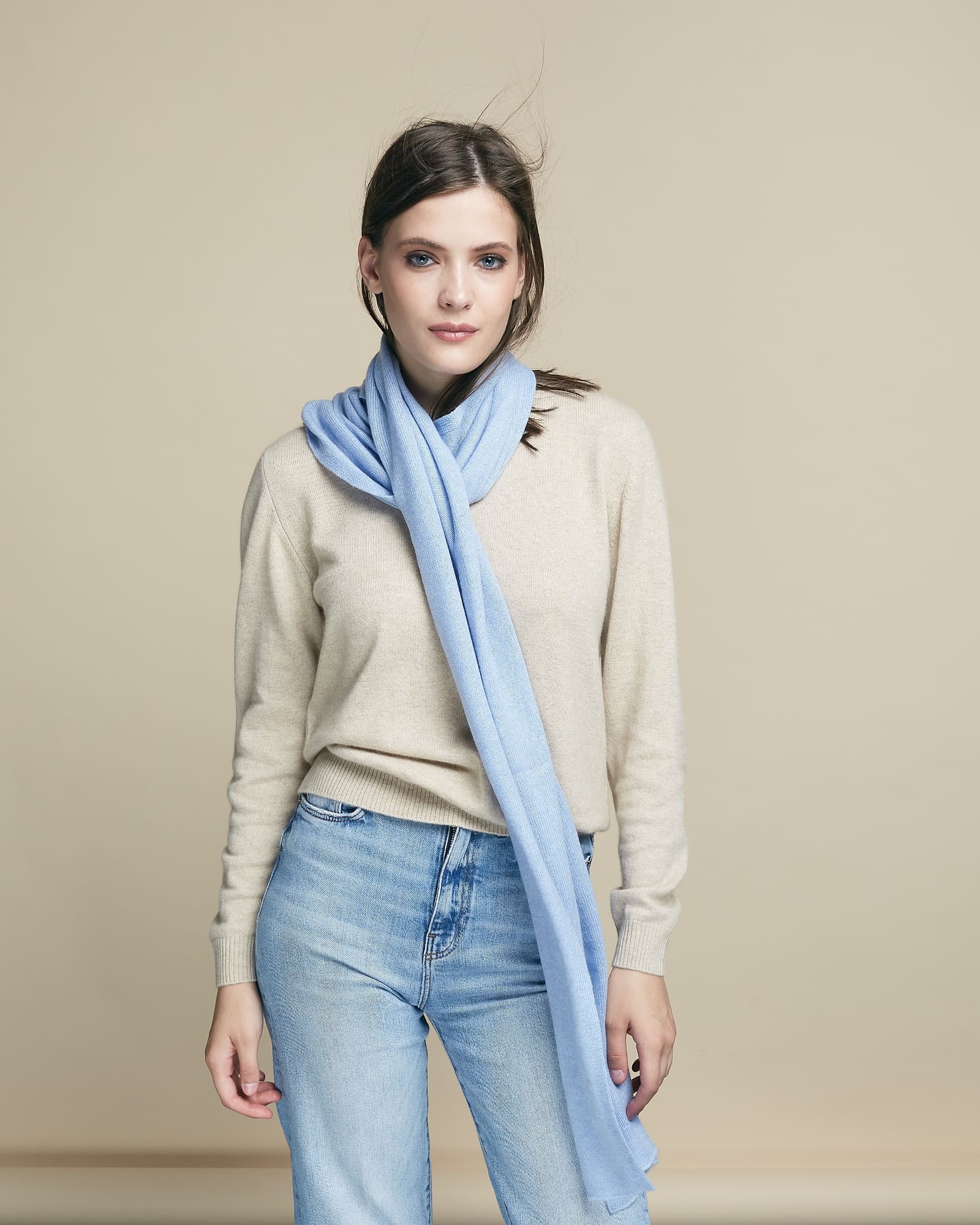 Шарф кашемировый 12028 голубой