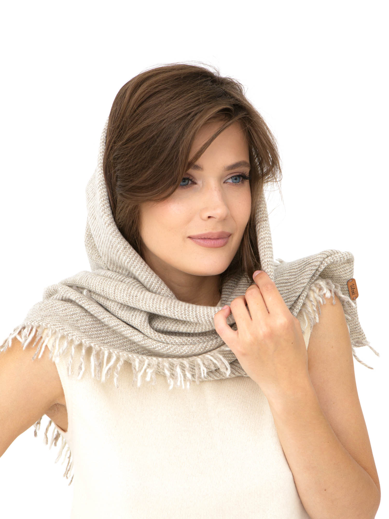 Мягкая и тёплая косынка приятно прилегает к коже и красиво драпируется. Её можно носить как шарф, накидку на плечи или стильный акцент поверх верхней одежды.