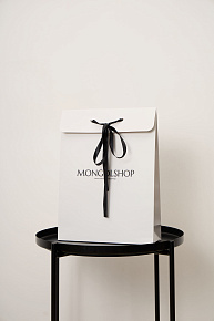 Лаконичный белый цвет с фирменным логотипом, дополненный контрастной черной лентой. Универсальный и эстетичный вариант для любого повода.